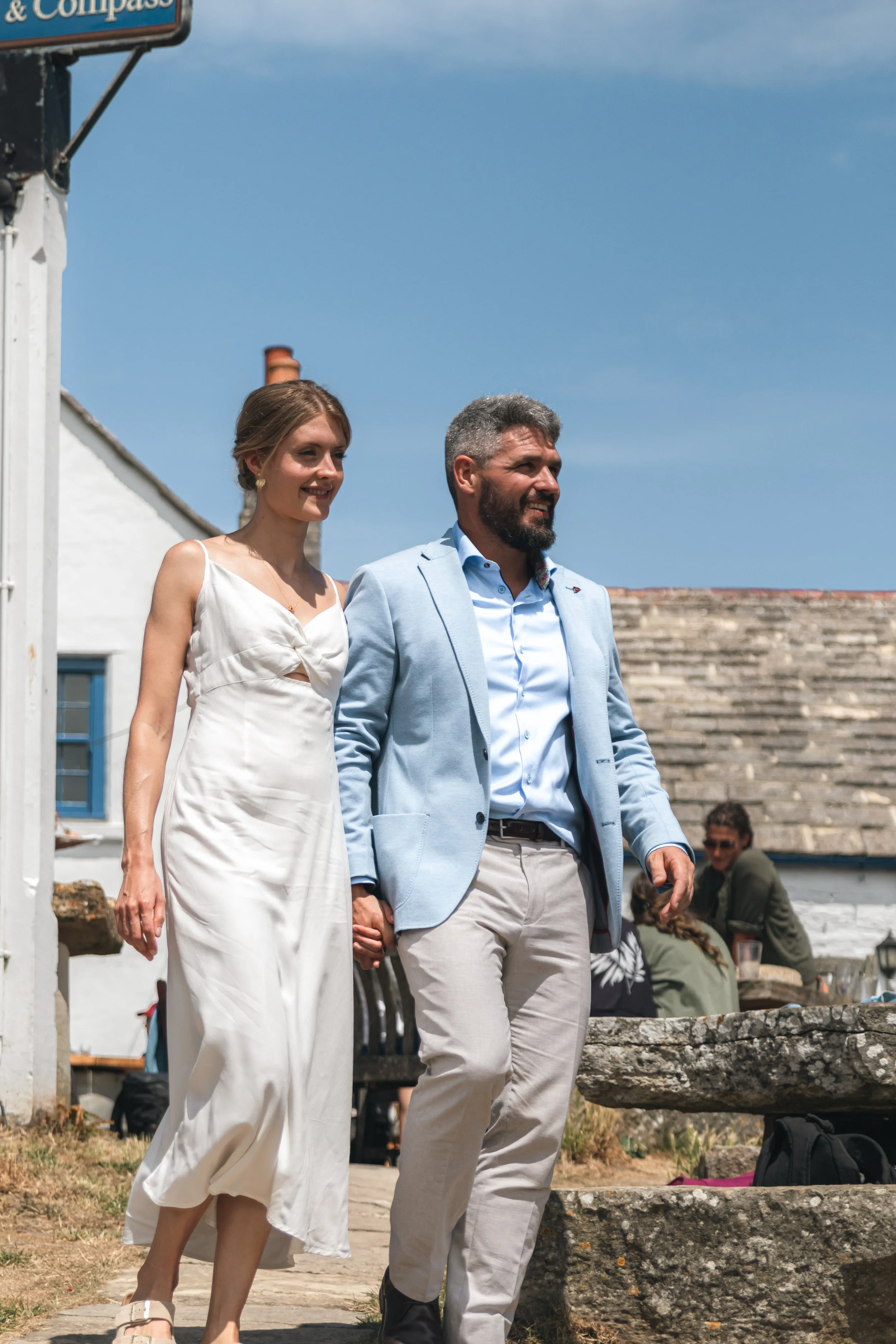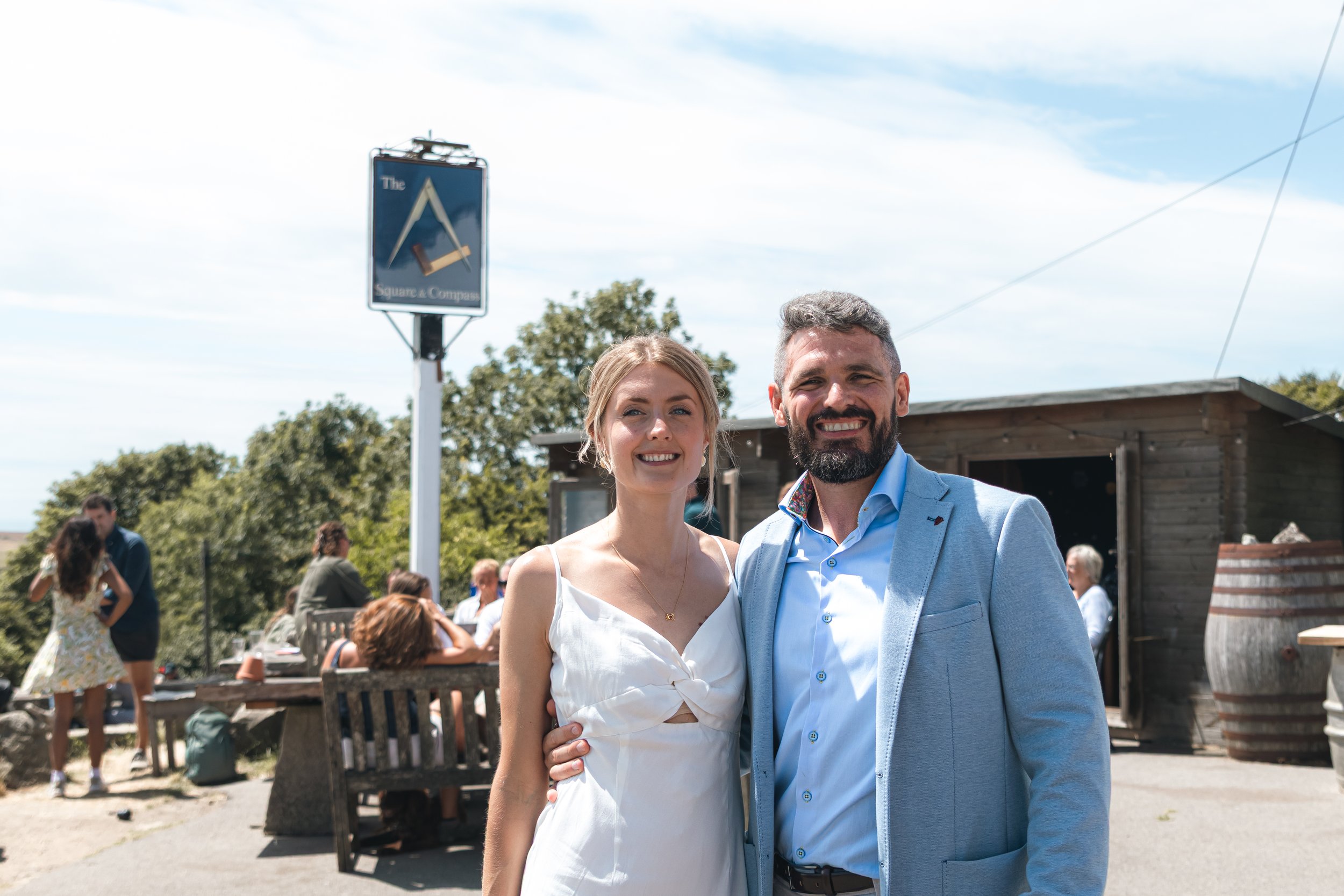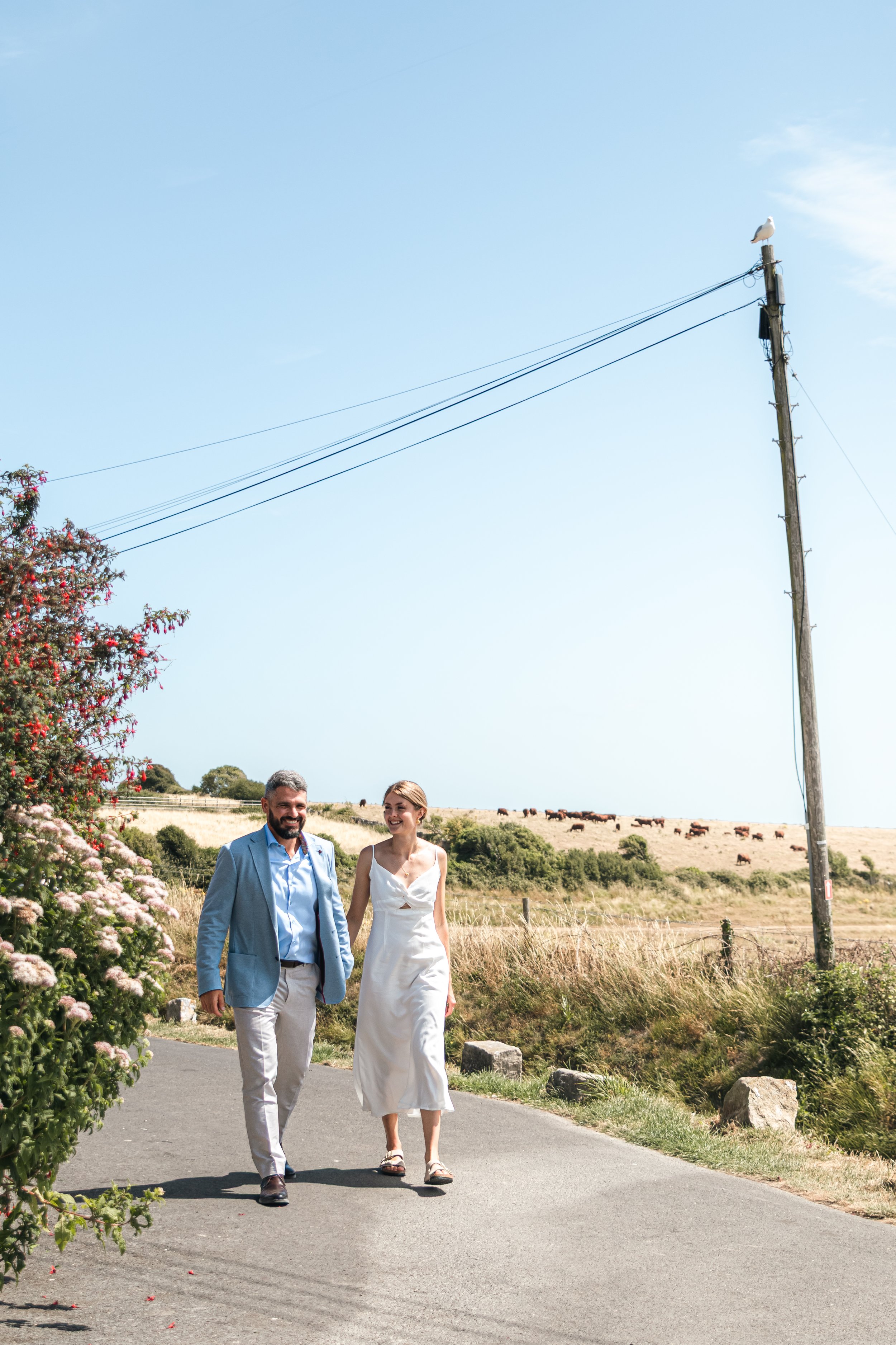 Alice & Adam’s Purbecks wedding was full of personality and memorable moments. They started the day with a relaxed meet-up at the pub, followed by a refreshing sea swim — exactly the kind of unconventional celebration they wanted.